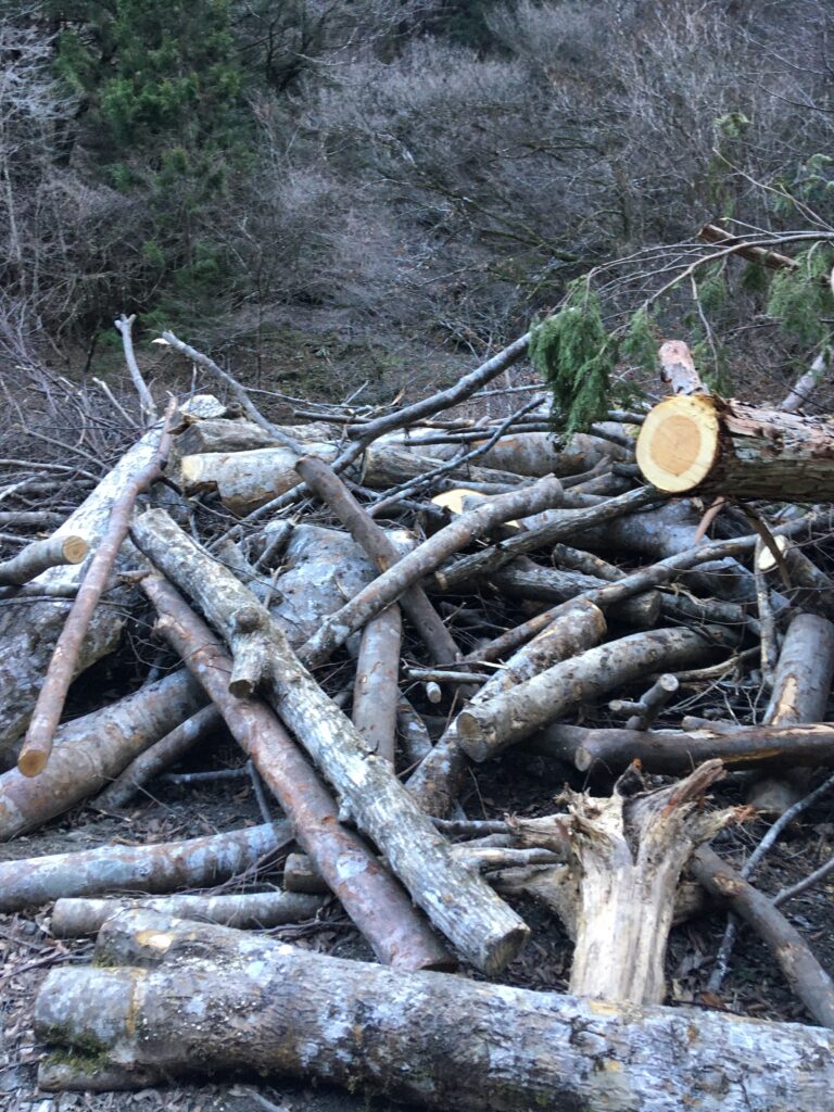 炭焼きの材料は原木(樫、欅、桜などの雑木)です。かつては山からノコや手斧、木馬で切り出し運んでいたということですが、いまは地元団体(土木建設会社や役場、森林組合等)が支障木として伐り出してくれている材を搬入することが多いです。今回も船谷から搬入作業し、原木整理(チェンソーで1200mmにカット)し、できれば薪割りして、炭出し後窯入れまでできたらと思います。お手伝いいただける助かります。炭焼きの様子はこちら